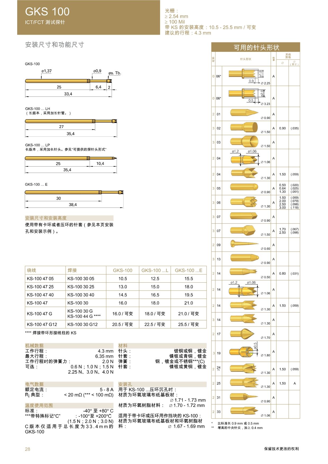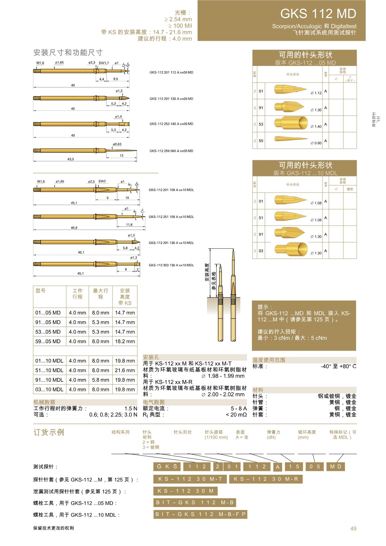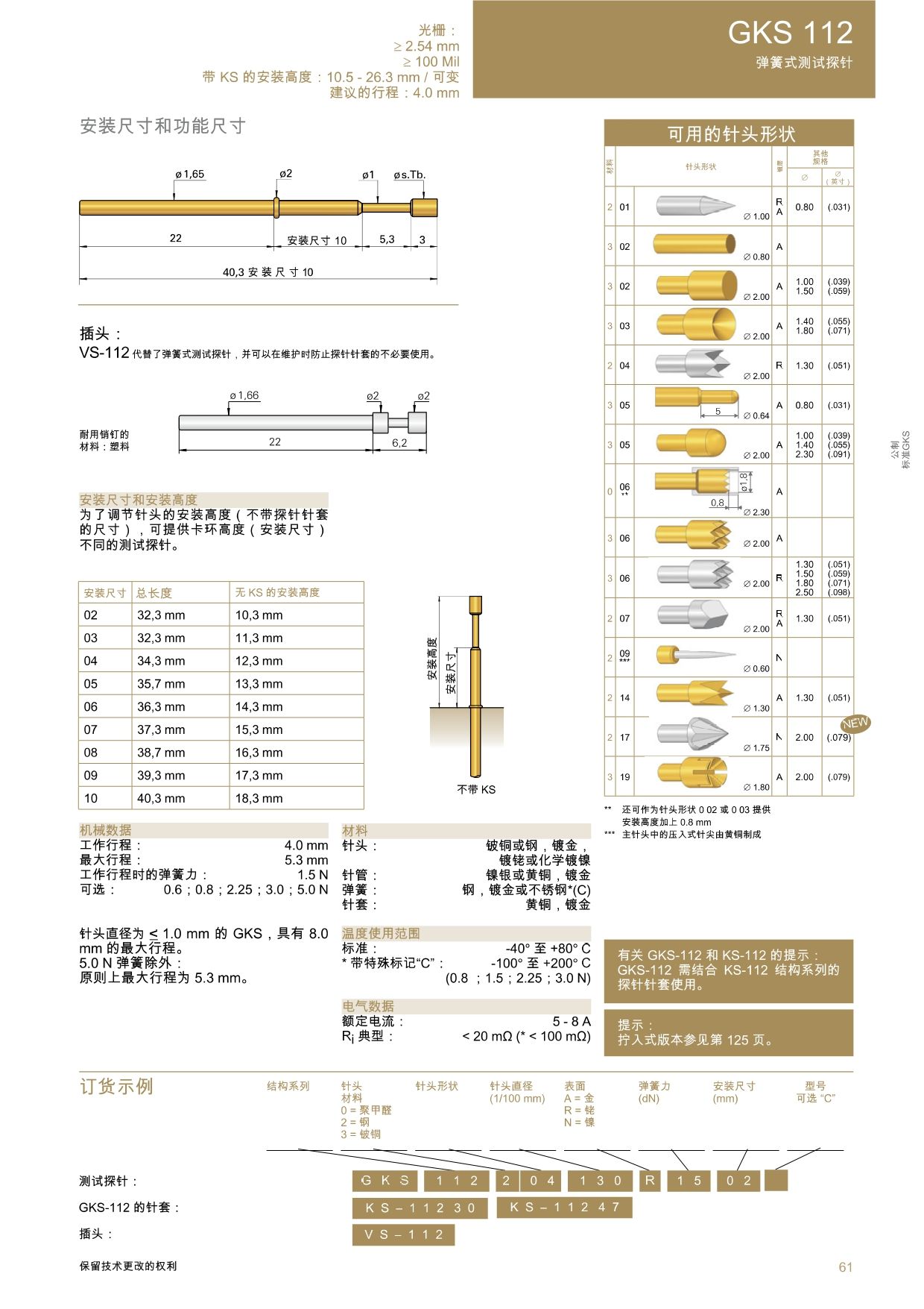 GKS-112彈簧式測試探針